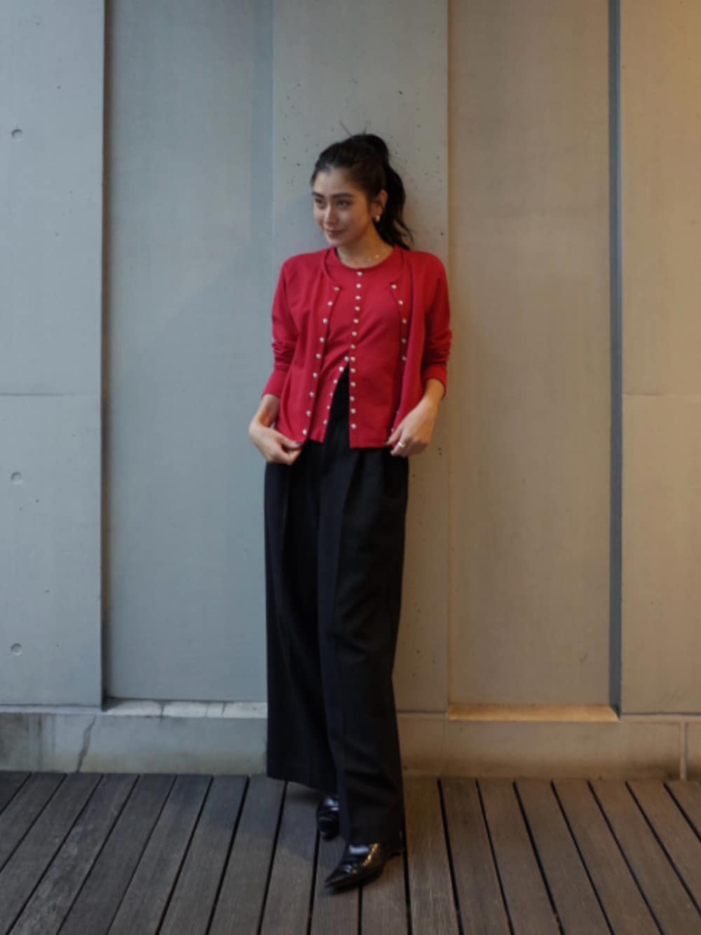 ALEXIA STAM(FLAGSHIP STORE OMOTESANDO)のカーディガン/ボレロ「Layered Snap Cardigan /レイヤードカーディガン」を使ったコーディネート