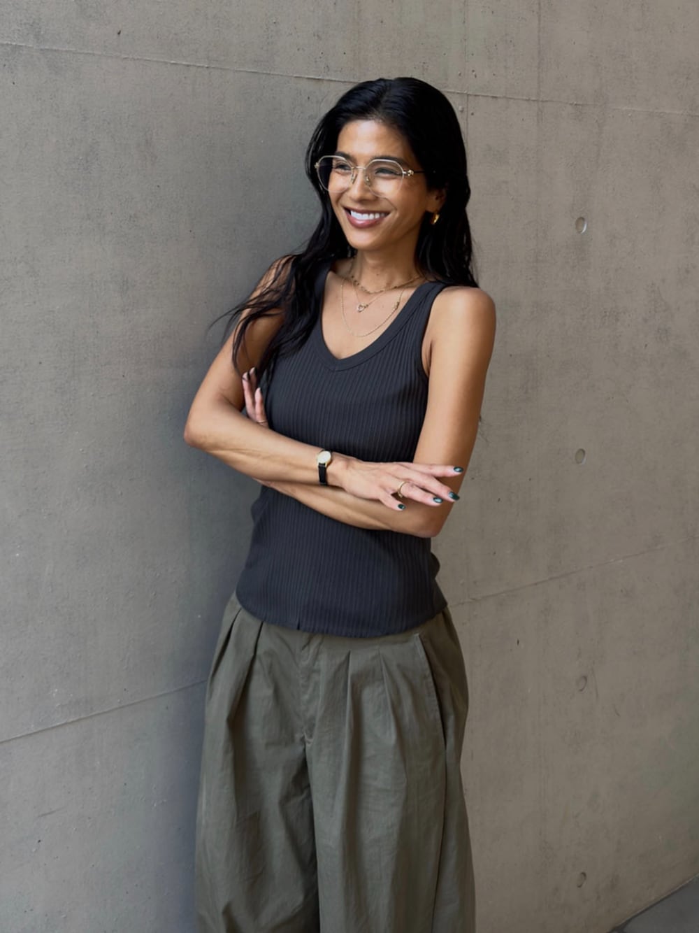 ALEXIA STAM(FLAGSHIP STORE OMOTESANDO)のタンクトップ「Rib V Neck Tank Top /Basic Vネックリブタンク」を使ったコーディネート
