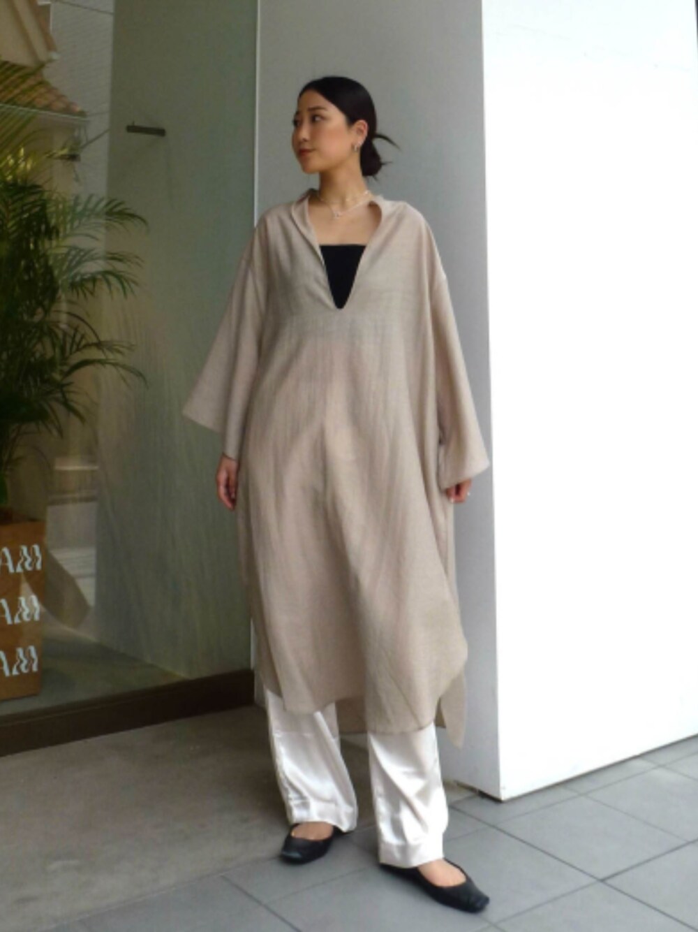 ALEXIA STAM(FLAGSHIP STORE OMOTESANDO)のワンピース「V Neck Kaftan Dress /Vネックカフタンドレス」を使ったコーディネート