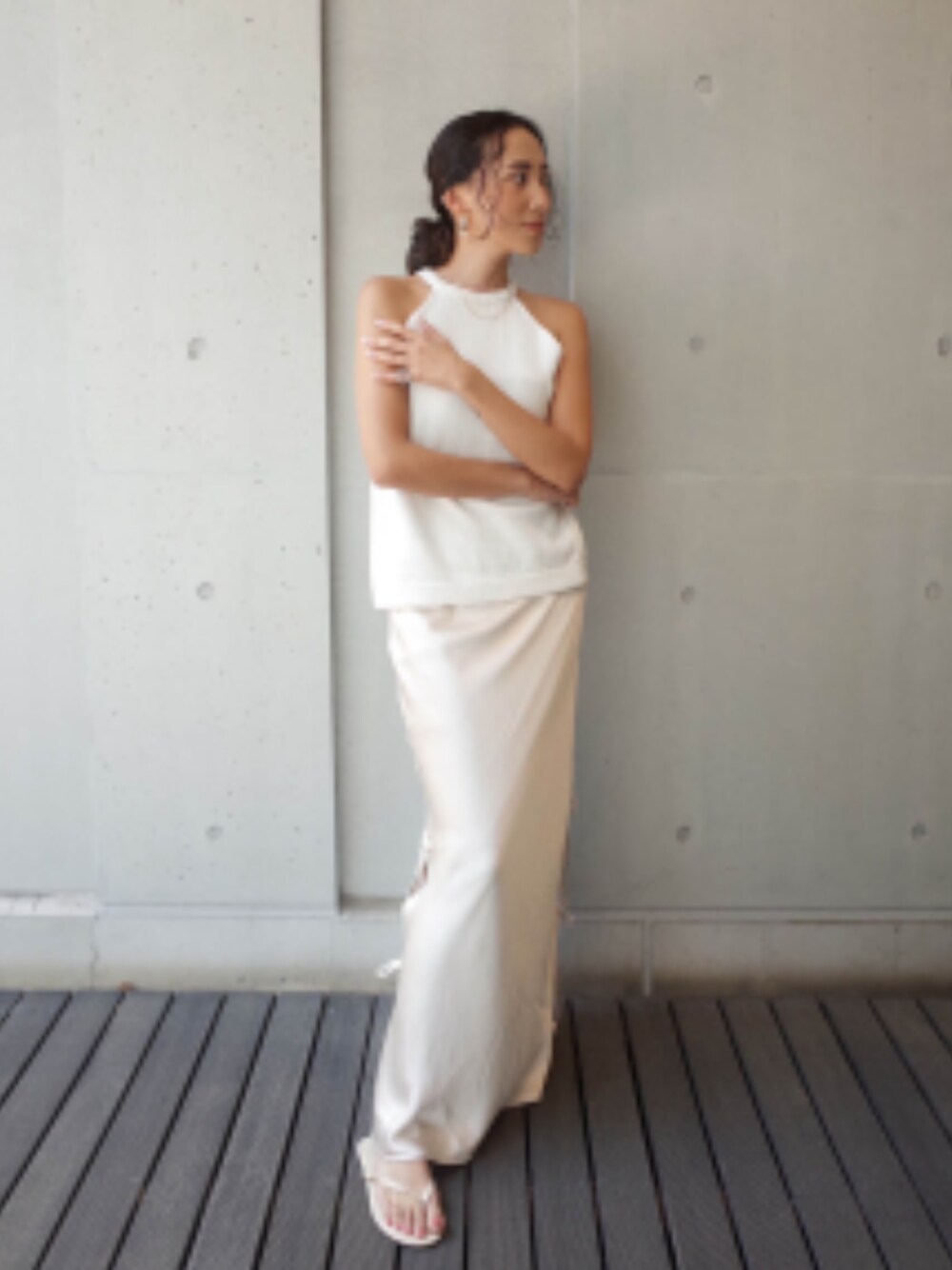 ALEXIA STAM(FLAGSHIP STORE OMOTESANDO)のスカート「Satin Side Ribbon Skirt /サイドリボンサテンスカート」を使ったコーディネート