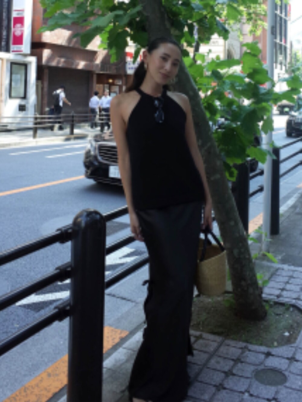 ALEXIA STAM(FLAGSHIP STORE OMOTESANDO)のタンクトップ「Halterneck Back Slit Knit Top /バックスリットタンクトップ」を使ったコーディネート