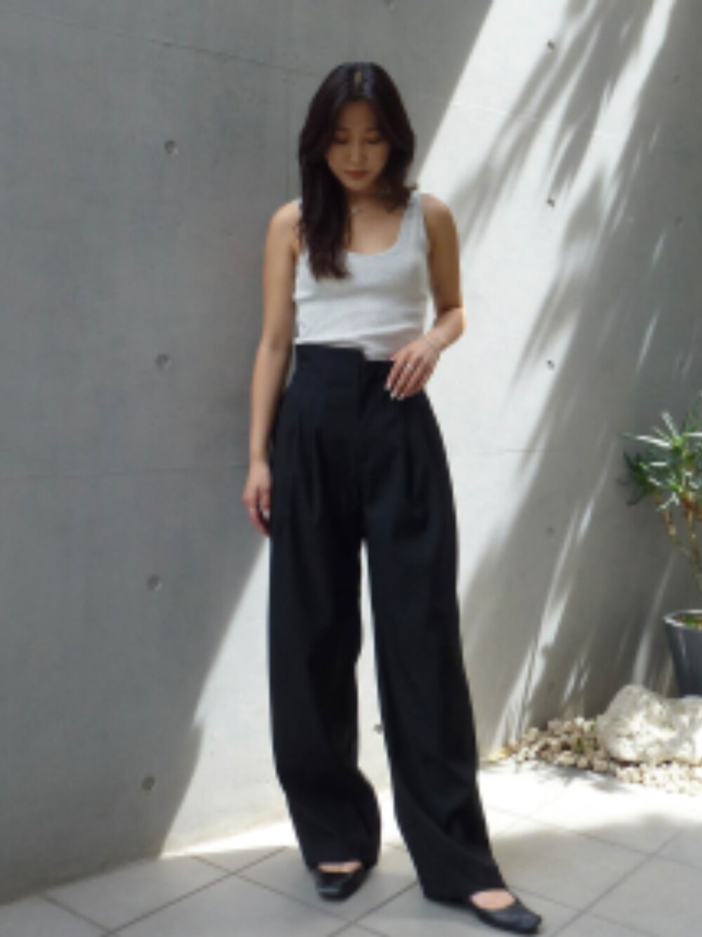ALEXIA STAM(FLAGSHIP STORE OMOTESANDO)のスラックス「High Waist Two Tuck Wide Pants /タックスラックスパンツ」を使ったコーディネート