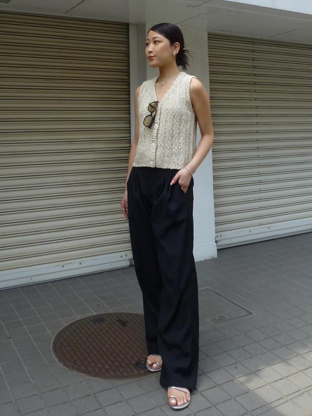 ALEXIA STAM(FLAGSHIP STORE OMOTESANDO)のスラックス「High Waist Two Tuck Wide Pants /タックスラックスパンツ」を使ったコーディネート