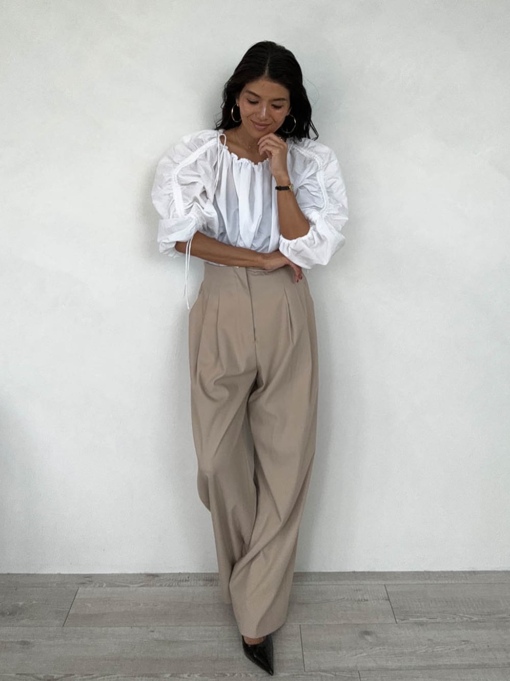 ALEXIA STAM(FLAGSHIP STORE OMOTESANDO)のスラックス「High Waist Two Tuck Wide Pants /タックスラックスパンツ」を使ったコーディネート