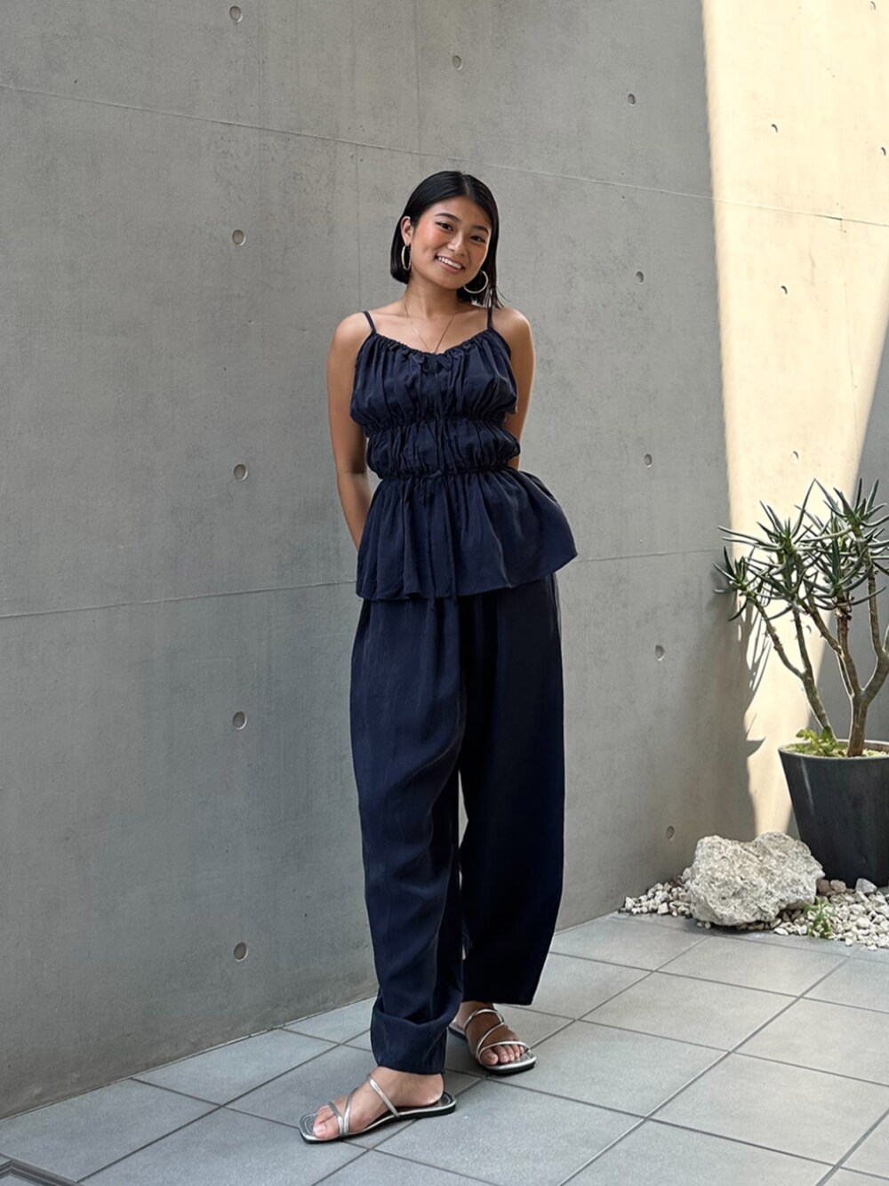 ALEXIA STAM(FLAGSHIP STORE OMOTESANDO)のパンツドレス「Gathered Camisole & Cozy Pants Set /ギャザーキャミ×パンツ 2点Set」を使ったコーディネート