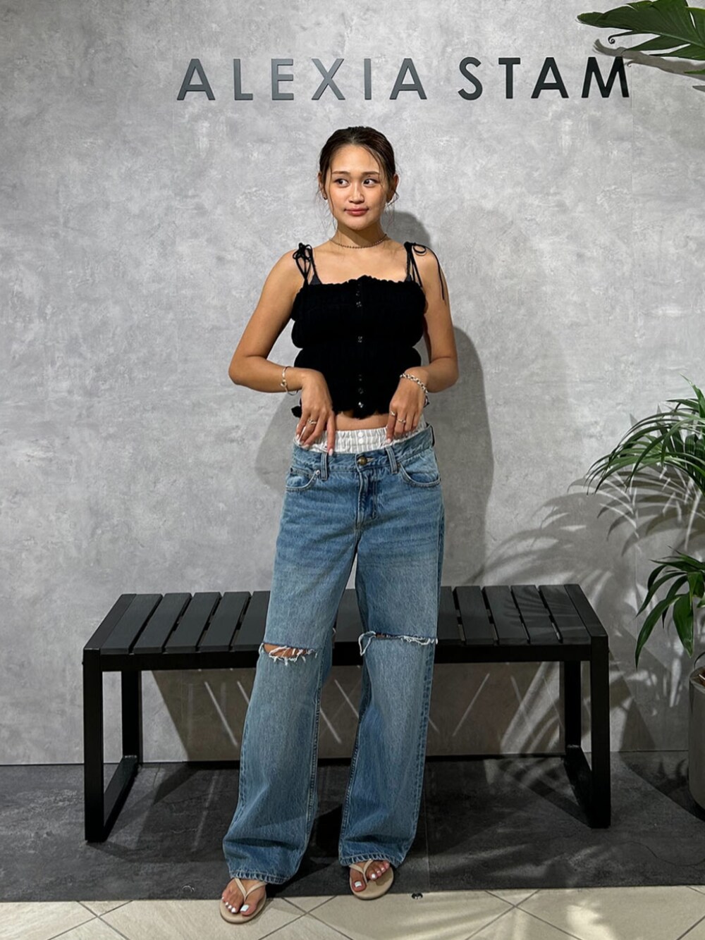 ALEXIA STAM(FLAGSHIP STORE OMOTESANDO)のデニムパンツ「Layered Waist Wide Denim Pants /レイヤードウエストデニム」を使ったコーディネート