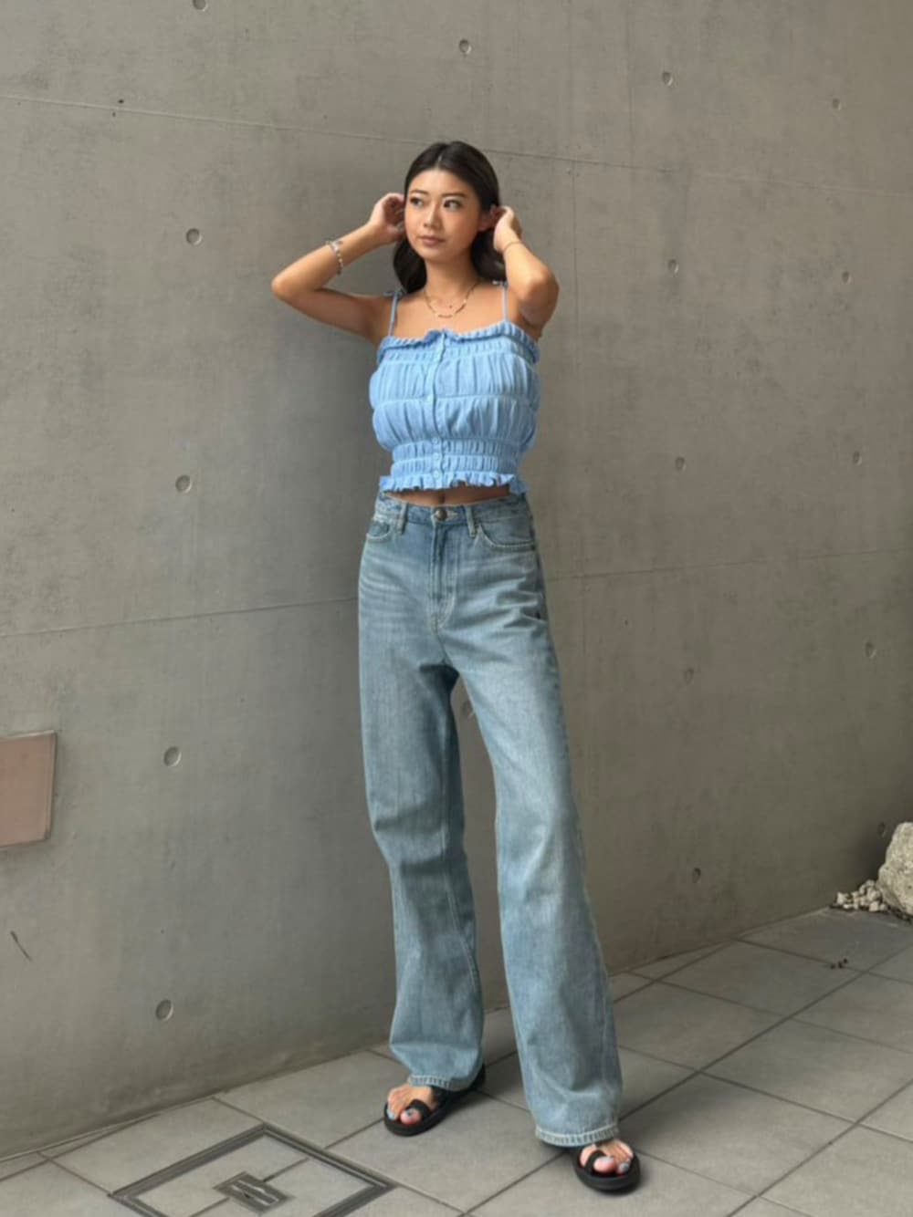 ALEXIA STAM(FLAGSHIP STORE OMOTESANDO)のキャミソール「Shirring Knit Camisole /シャーリングニットキャミソール」を使ったコーディネート
