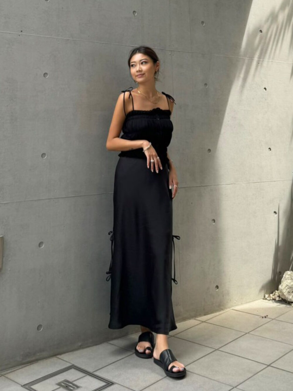 ALEXIA STAM(FLAGSHIP STORE OMOTESANDO)のスカート「Satin Side Ribbon Skirt /サイドリボンサテンスカート」を使ったコーディネート