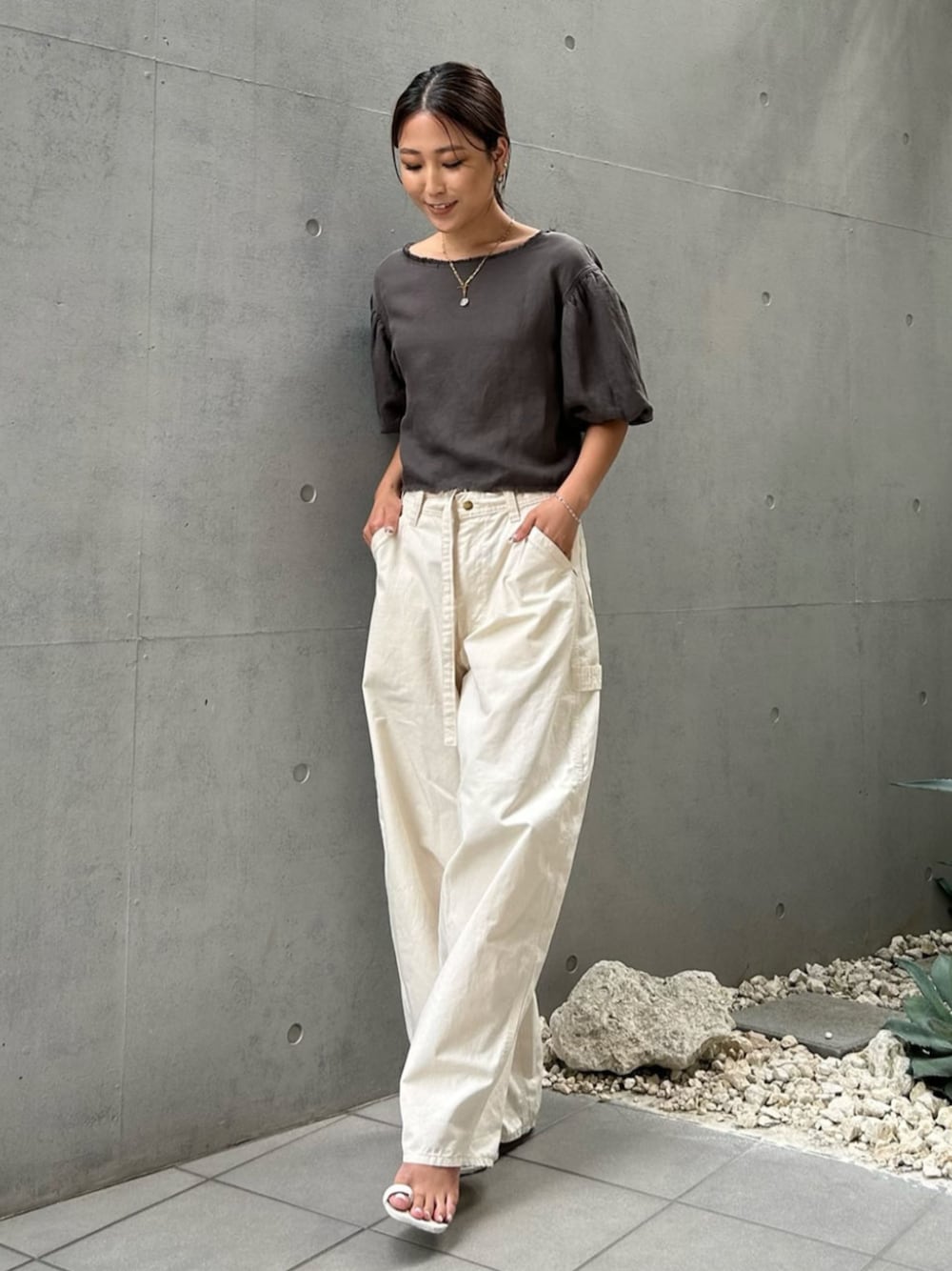 ALEXIA STAM(FLAGSHIP STORE OMOTESANDO)のTシャツ/カットソー「Back Ribbon Puff Sleeve Top / パフスリーブトップス」を使ったコーディネート