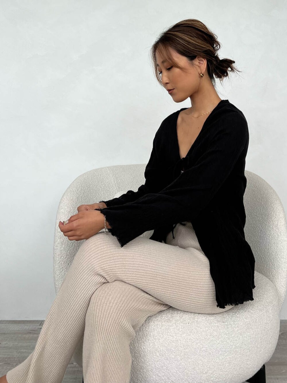 ALEXIA STAM(FLAGSHIP STORE OMOTESANDO)のシャツ/ブラウス「Crinkle Ribbon Blouse /クリンクルリボンブラウス」を使ったコーディネート
