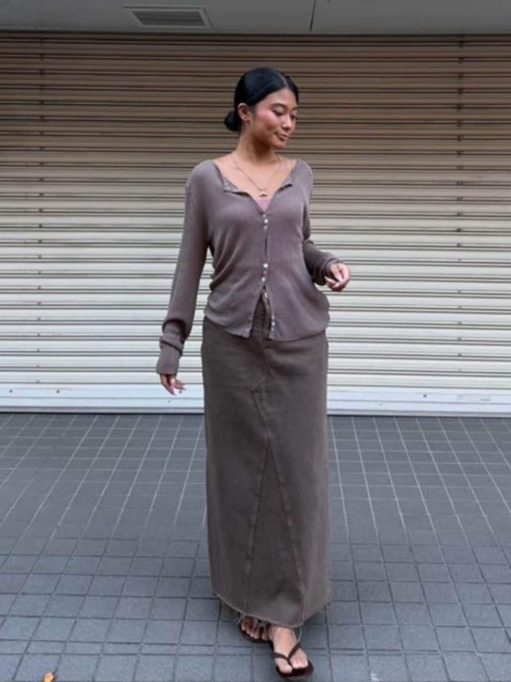 ALEXIA STAM(FLAGSHIP STORE OMOTESANDO)のデニムスカート「Low Rise Denim Long Skirt/ロングデニムスカート」を使ったコーディネート