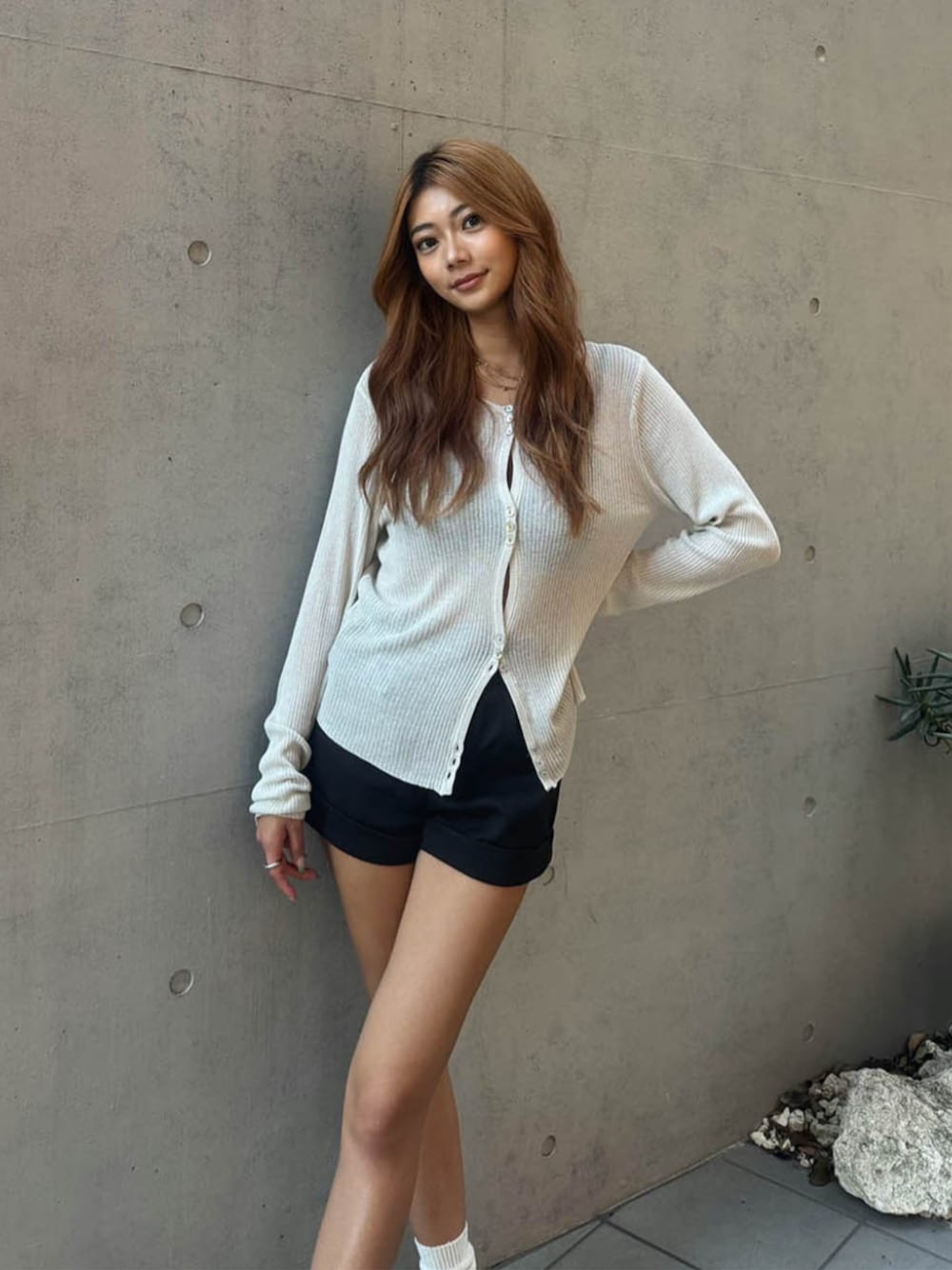 ALEXIA STAM(FLAGSHIP STORE OMOTESANDO)のカーディガン/ボレロ「Sheer Knit Cardigan /シアーカーディガン」を使ったコーディネート