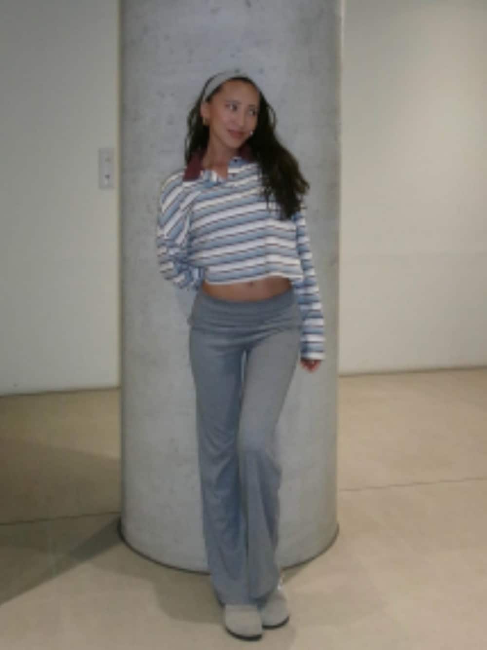 ALEXIA STAM(FLAGSHIP STORE OMOTESANDO)のポロシャツ「Stripe Polo Shirt /コンパクト丈ストライプポロシャツ」を使ったコーディネート