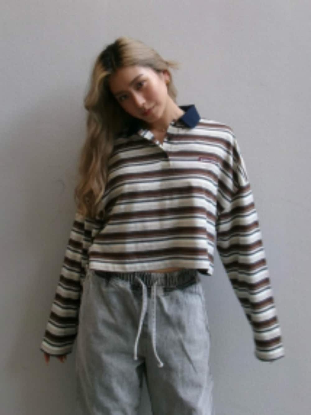 ALEXIA STAM(FLAGSHIP STORE OMOTESANDO)のポロシャツ「Stripe Polo Shirt /コンパクト丈ストライプポロシャツ」を使ったコーディネート