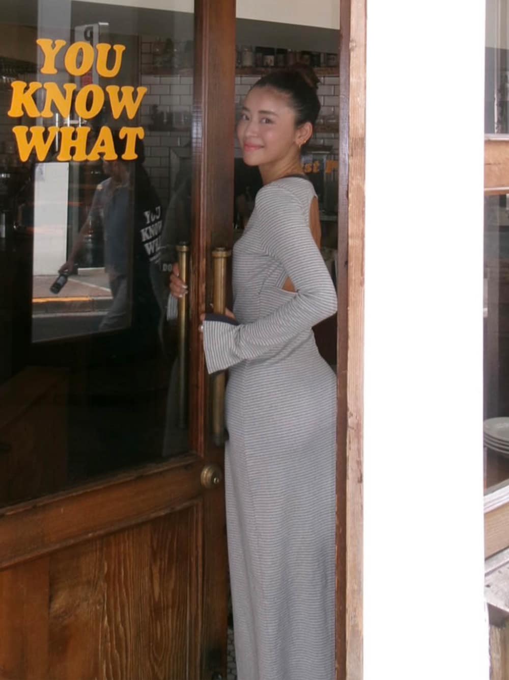 ALEXIA STAM(FLAGSHIP STORE OMOTESANDO)のワンピース「Striped Long Sleeve Dress /カップ付きストライプロングドレス」を使ったコーディネート