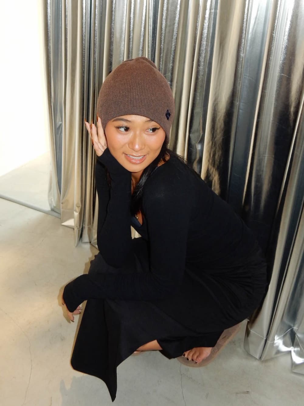 ALEXIA STAM(FLAGSHIP STORE OMOTESANDO)のニットキャップ/ビーニー「Logo Beanie /ロゴ刺しゅうビーニー」を使ったコーディネート
