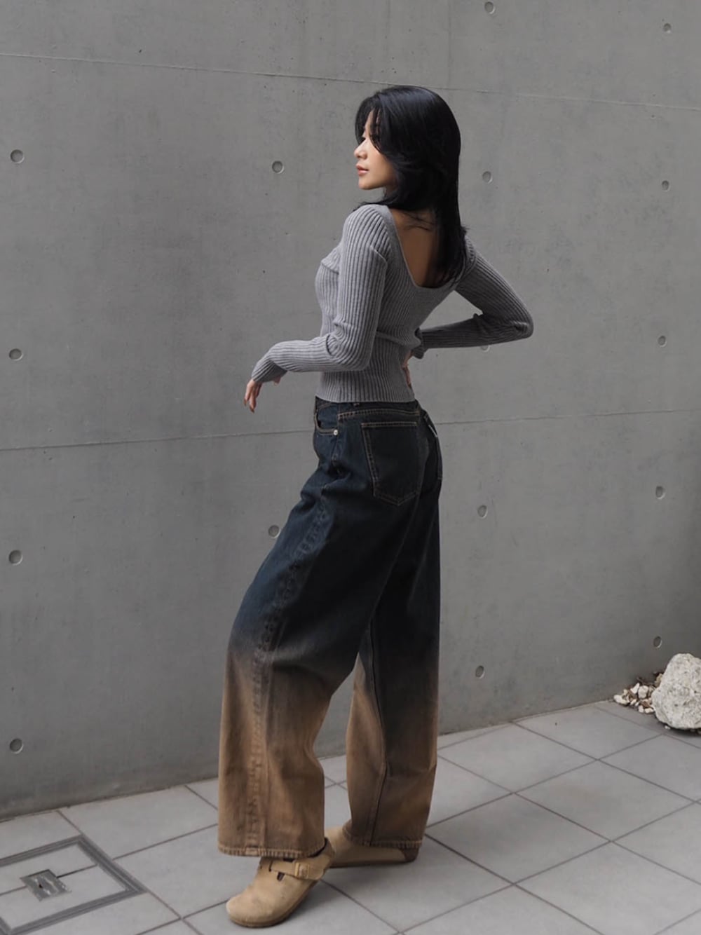 ALEXIA STAM(FLAGSHIP STORE OMOTESANDO)のニット/セーター「Rib Knit Long Sleeve Top /背中開きニットトップス」を使ったコーディネート
