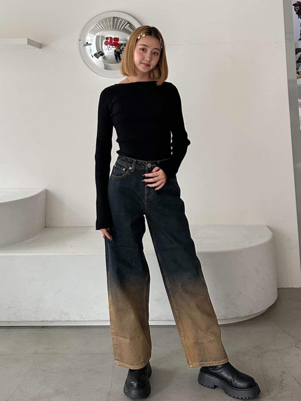 ALEXIA STAM(FLAGSHIP STORE OMOTESANDO)のニット/セーター「Rib Knit Long Sleeve Top /背中開きニットトップス」を使ったコーディネート