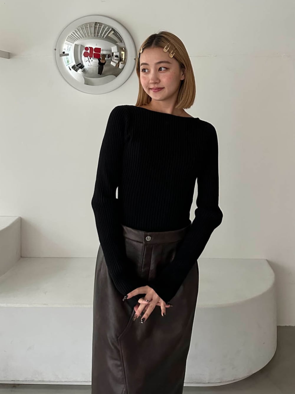 ALEXIA STAM(FLAGSHIP STORE OMOTESANDO)のニット/セーター「Rib Knit Long Sleeve Top /背中開きニットトップス」を使ったコーディネート
