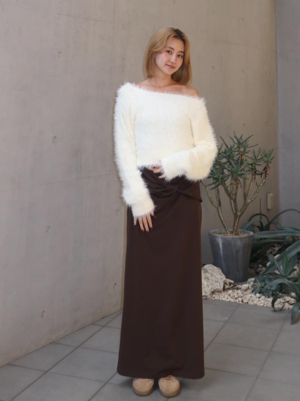 ALEXIA STAM(FLAGSHIP STORE OMOTESANDO)のスカート「Wellness Twist Slit Skirt /ツイストスリットスカート」を使ったコーディネート