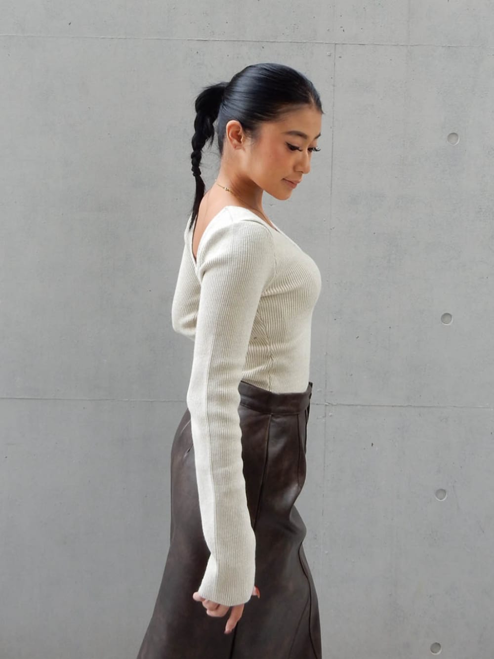 ALEXIA STAM(FLAGSHIP STORE OMOTESANDO)のスカート「Fake Leather Warm Long Skirt /裏起毛フェイクレザースカート」を使ったコーディネート