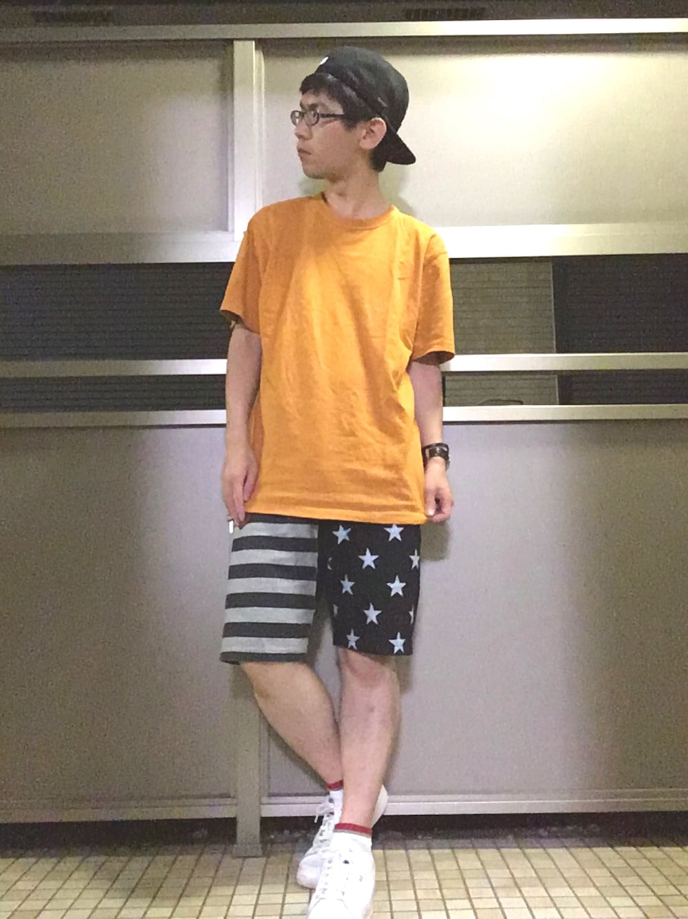 先週末のカッコ・B。 この日はフツーのUniqlo UのTシャツ。 あえて売れ筋じゃなそうな色んで買ったのでした。 ショートパンツとの合わせ効果でハデハデに 笑