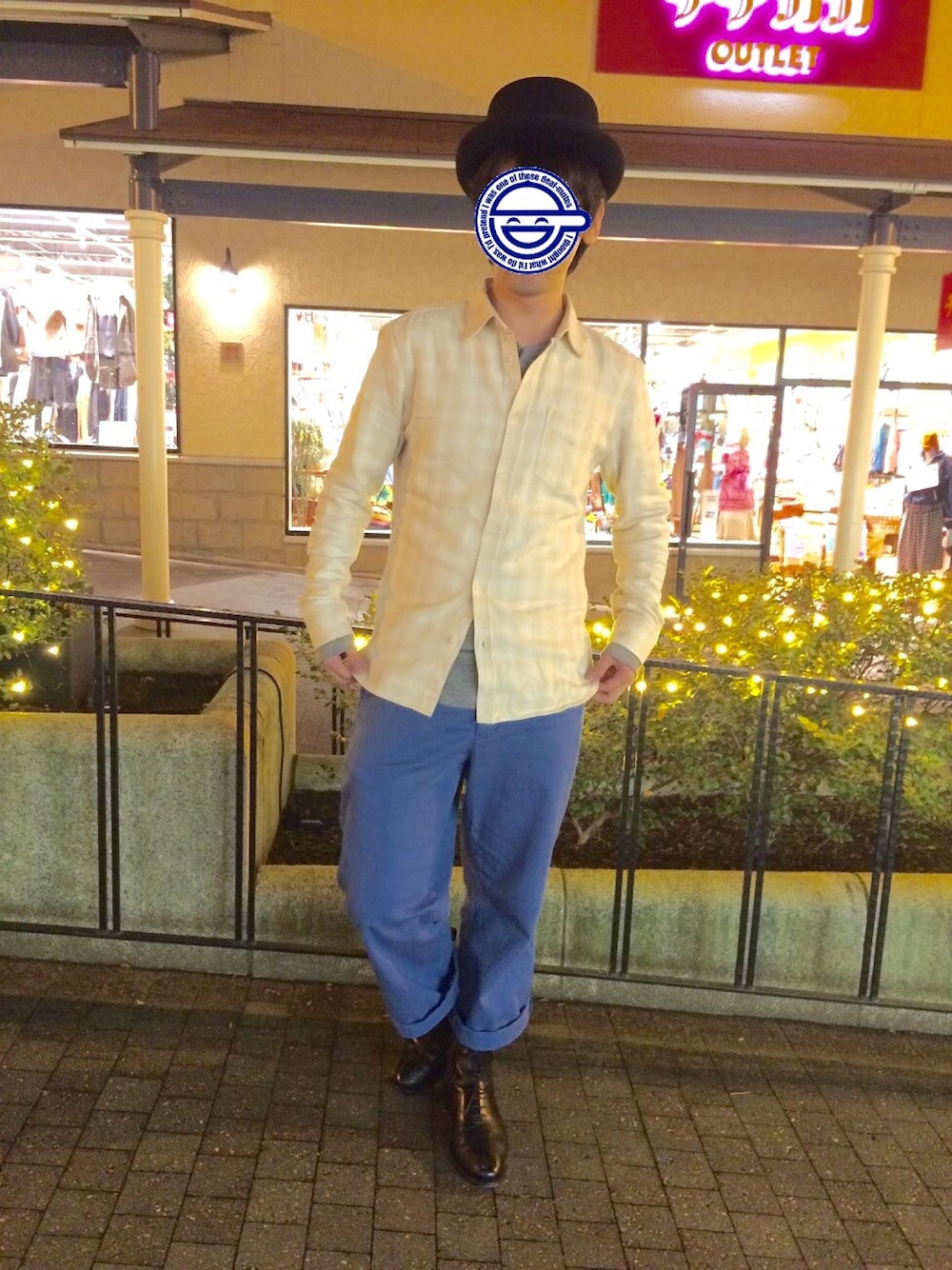 適当にやったらなかなか愉快なコーディネートになっちゃいました。 この日は茨城県・あみプレミアムアウトレットにお出かけして、弟に撮ってもらいました。