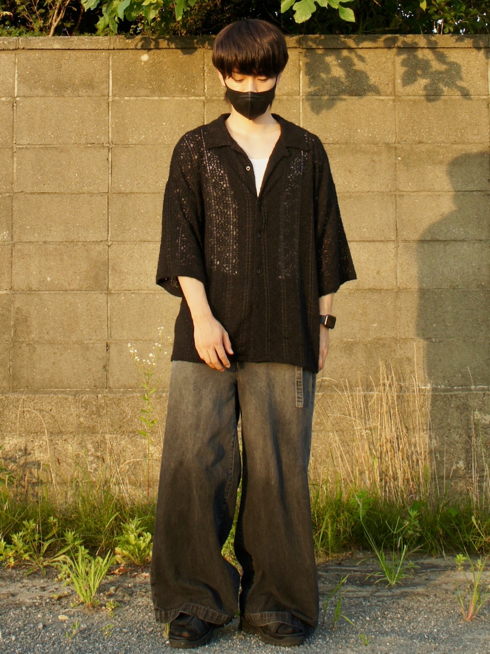 こんにちは! いつもいいね、お気に入り、ありがとうございます🙇♂️ 連日30度超の日々で、流石に暑すぎますね😩 暑い日はレースシャツの下にタンクトップの通気性抜群のコーデで乗り切ろうと思って組んだコーデです!