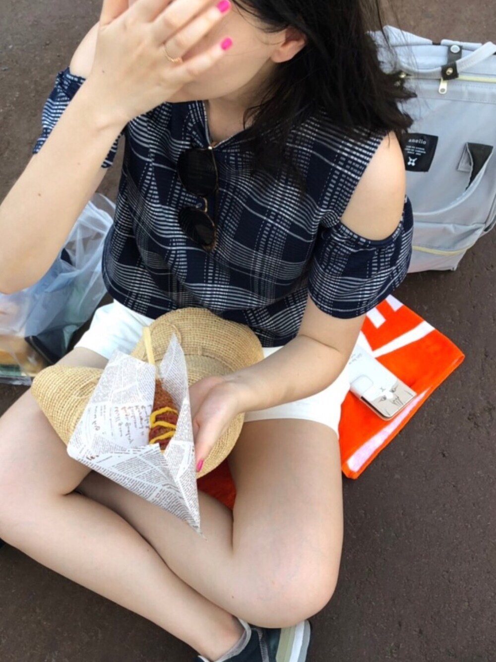 初めてチーズハットグを食べた日😗 肩出しでちょっと韓国風fashion💕