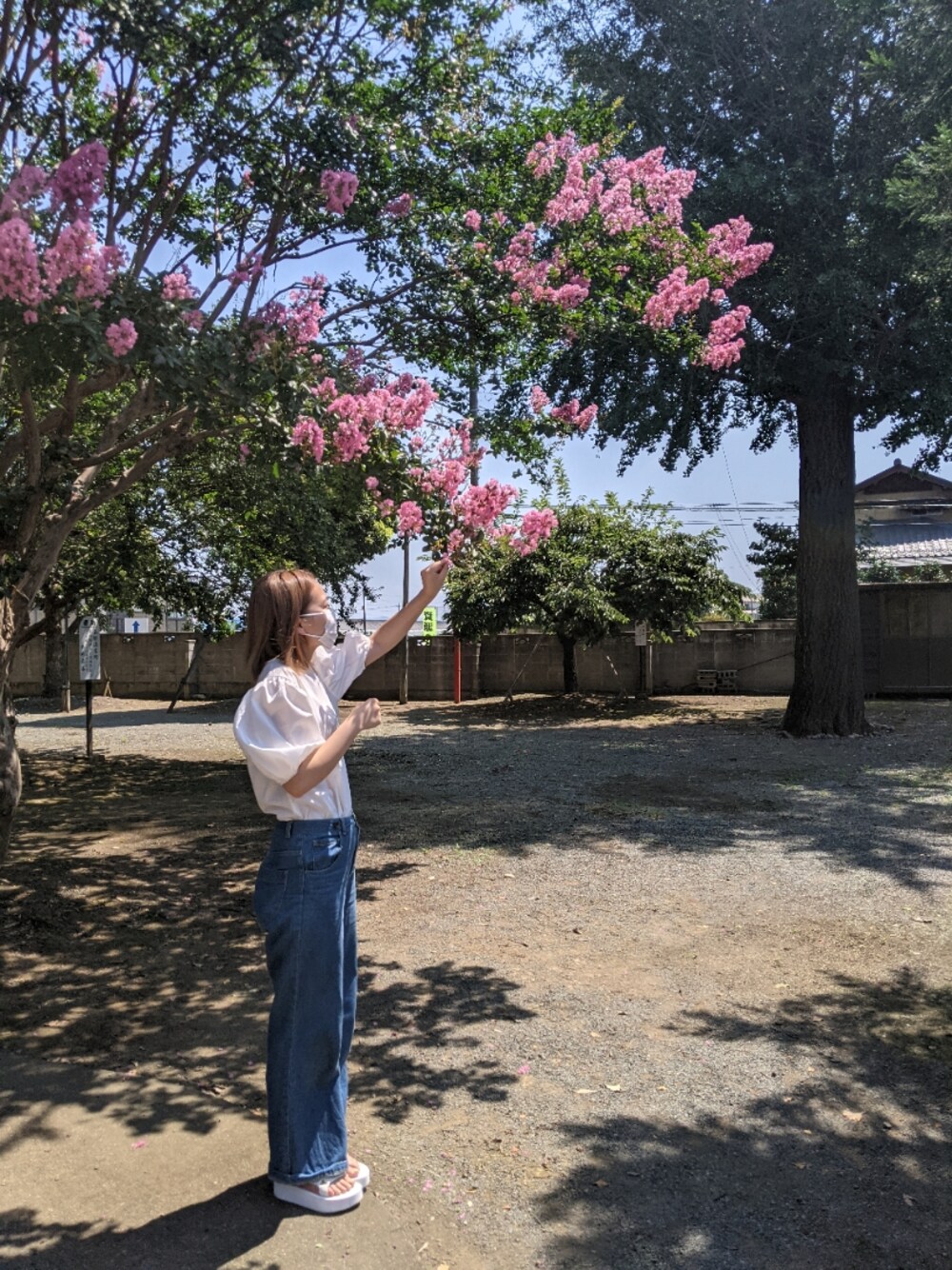 暑くてテンション上がります☺️ 毎日が夏休みなきぶん。 めずらしくスポサン履きました🌴 ボリュームショルダーいまいち似合わない💦