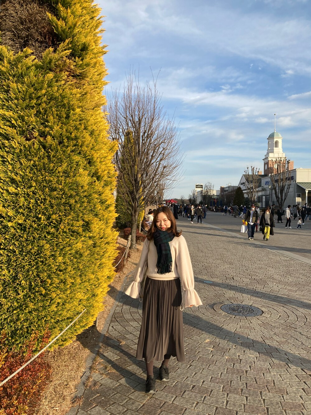 冬の太陽の日差しが心地良い日🌞 プリーツが綺麗なロングスカートは フレアが絶妙な感じでよき💕