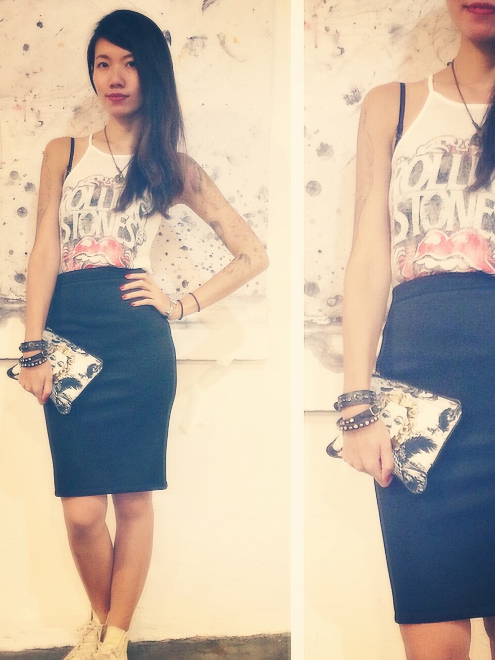 A simple high waisted skirt and a rolling stone printed tops! Im a rocker!!