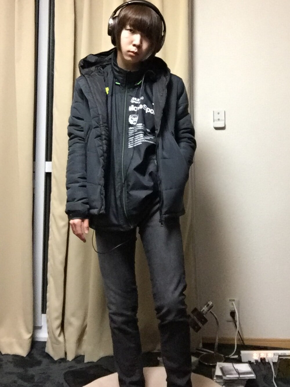 寒かったからダウン着ただけのやーつ まさかの雨降ってました、、、 聴いてるのはチャイナ・ディスコティカ