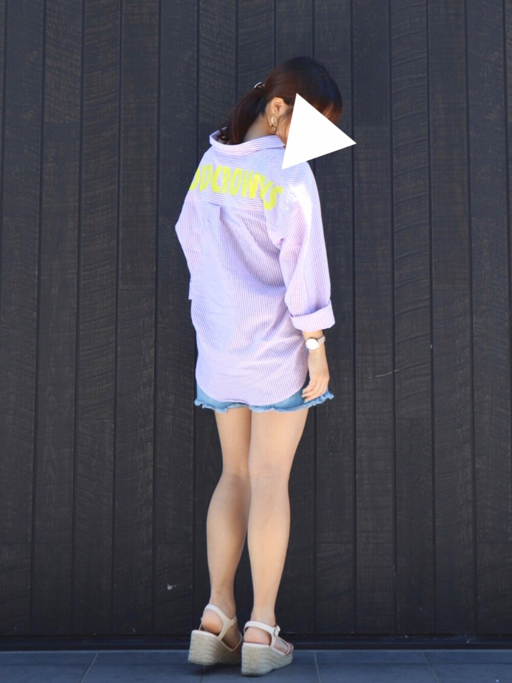 今日は栃木県の日光へお出かけ🚗 . . お気に入りのストライプシャツをメインに! 後ろの蛍光イエローのロゴとパープルのストライプのデザインは新鮮! 襟ぬきをして着くずすのがポイント💡 パジャマ感をおさえたカジュアルコーデ☘