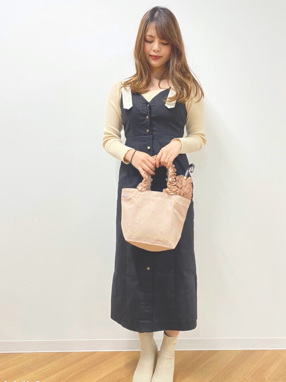 aiのトートバッグ「帆布フリルハンドルトートSバッグ」を使ったコーディネート