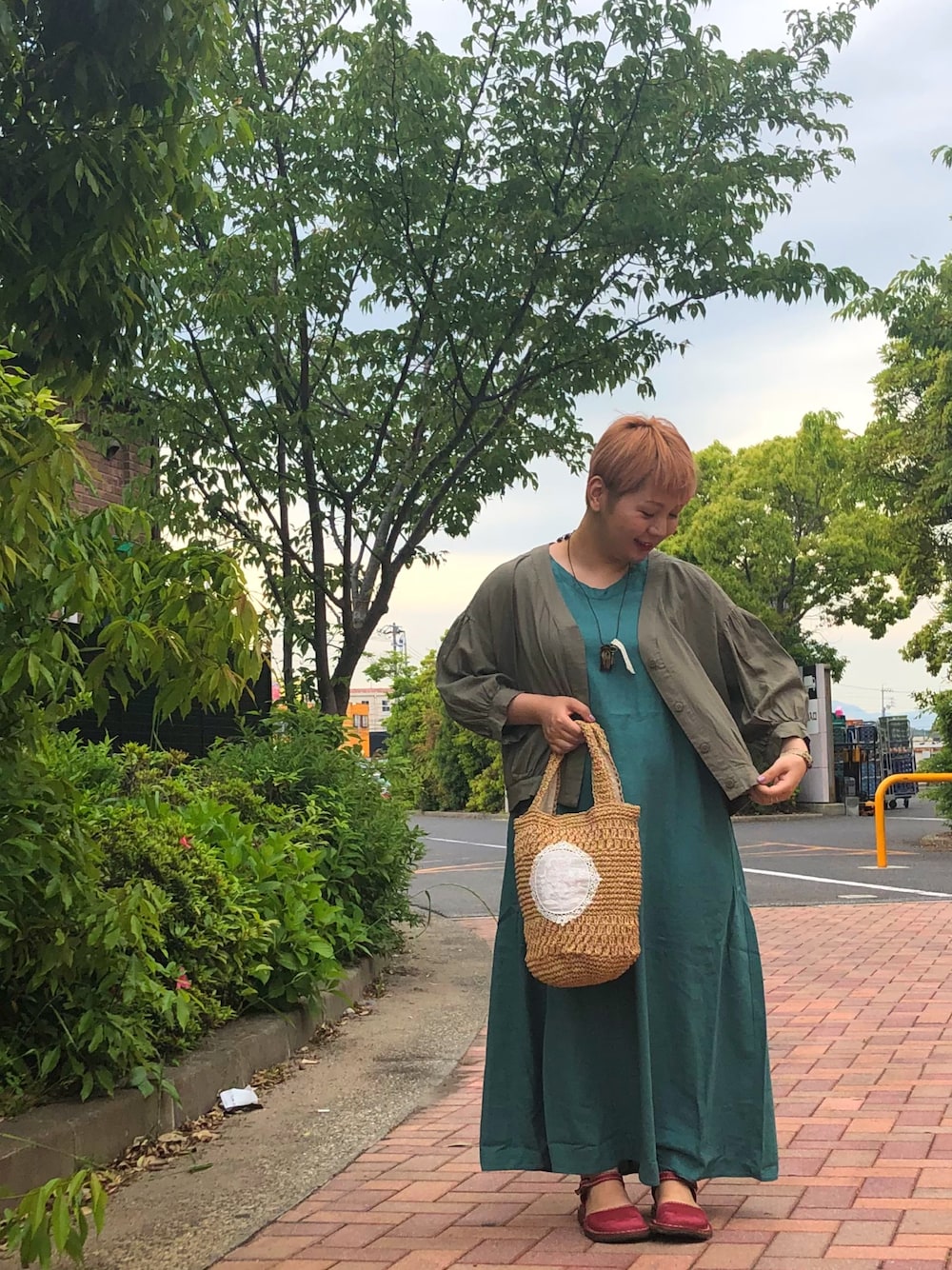 やまだ めいのワンピース「麻レーヨンVネックノースリーブワンピース」を使ったコーディネート