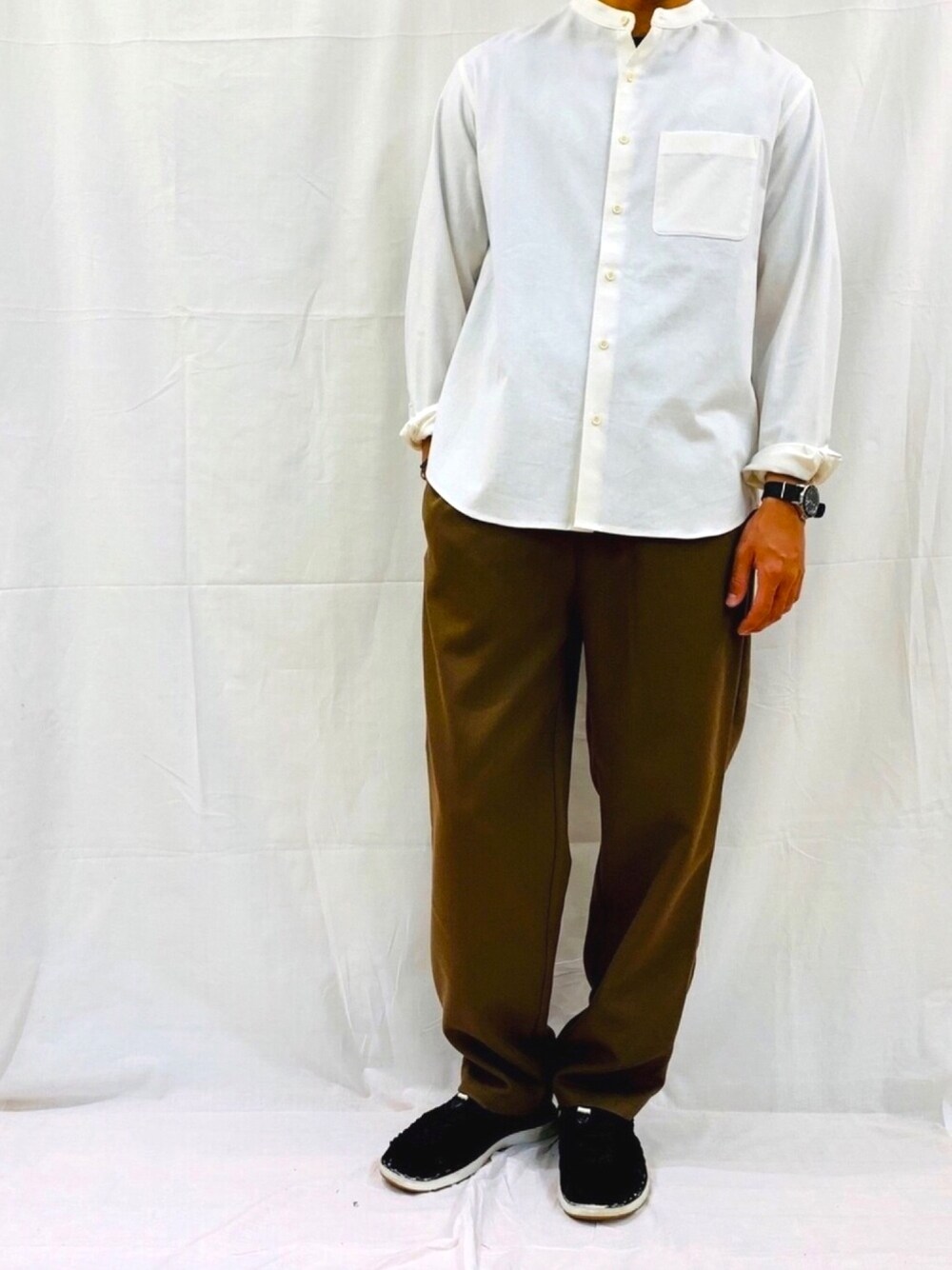 リネン素材のバンドカラーシャツで心地良く小綺麗に