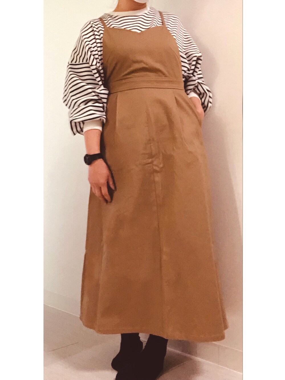 てらさんボーダー着回し。 GUのチノサロペットワンピース。 肩紐が細いジャンスカ探してたー! 下半身大きいのでハリ感あるスカートばかり。 これブラックも欲しいなぁ。