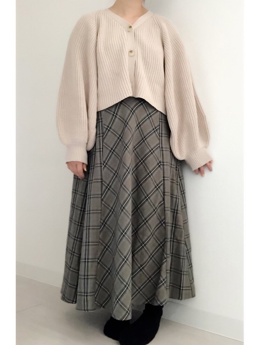 しまむらコーデ。 ぽわん袖が可愛いすぎるカーデと 柄に一目惚れのてらさんのチェックスカート。 ボリューム袖って着るとヘタっちゃう物が多い気がするのですが、このボリュームキープ力! このぽわん感がたまらなく可愛いし、 低身長に最適なショート丈も嬉しい。 ロンT合わせやワンピースにも... めっちゃ気回せそうな1枚です。