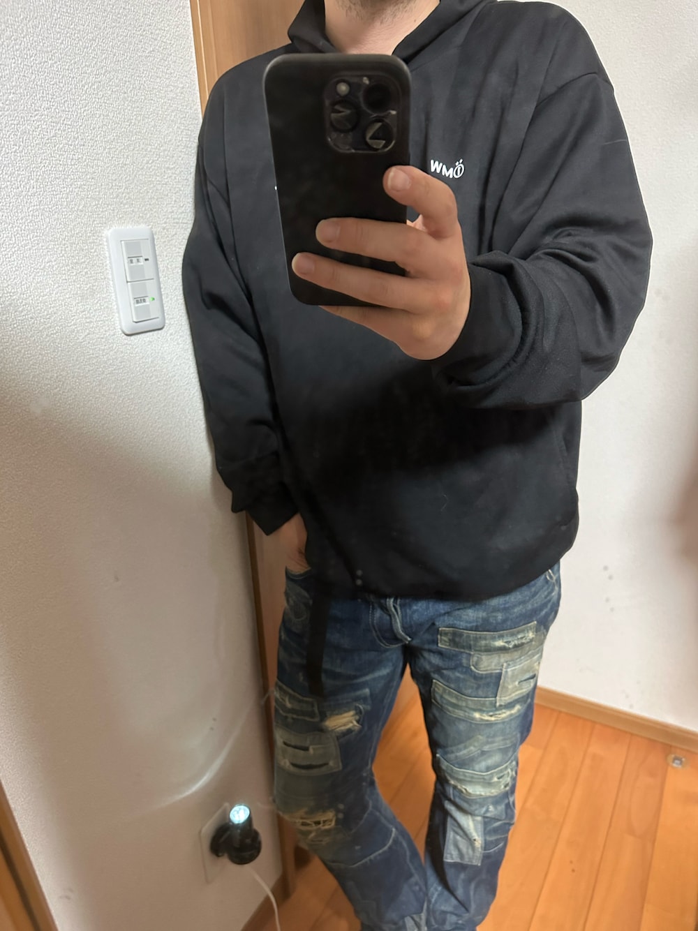 フーディーにデニム