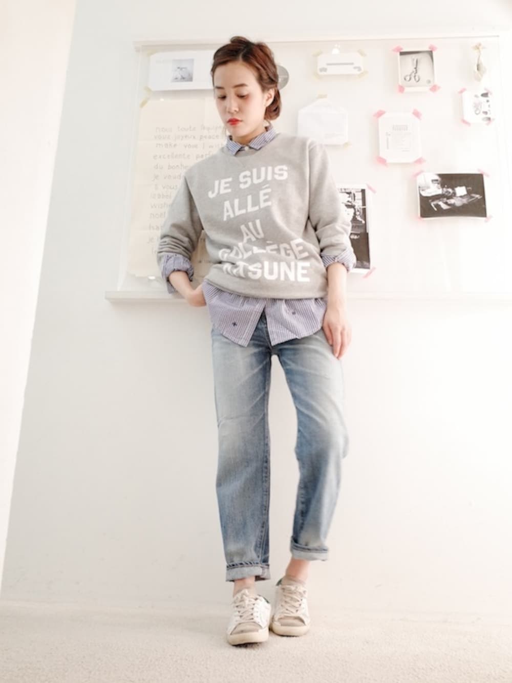スウェット/¥17’000- (KITSUNE TEE)Size シャツ/¥45’000- (QUEENE AND BELLE)Size S デニム/¥28’000- (Ron Herman VINTAGE)Size 24
