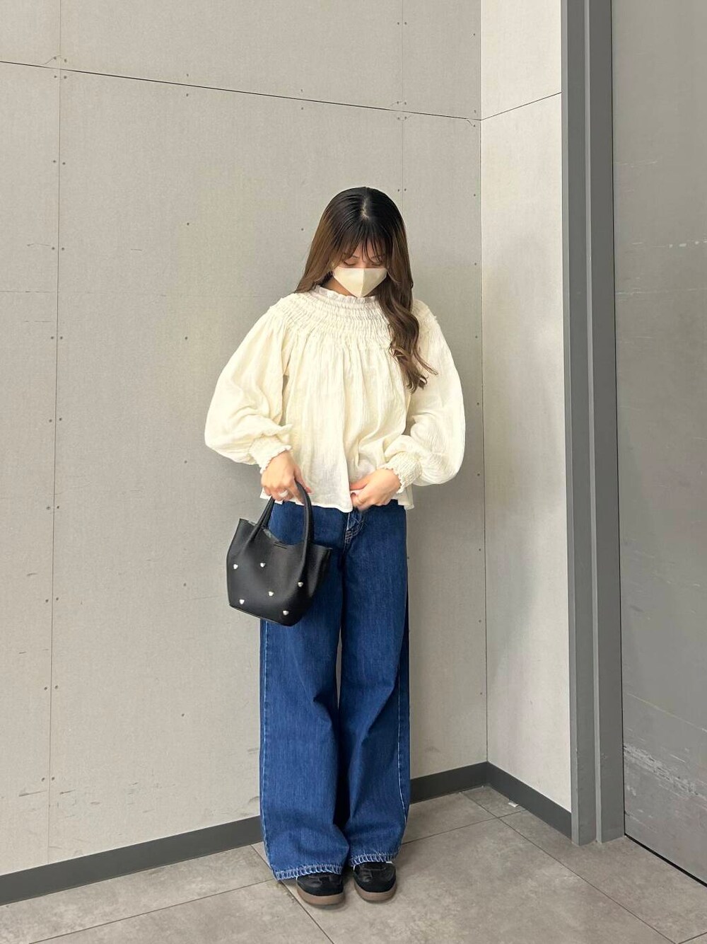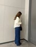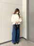 ご覧いただきありがとうございます!! ブラウスを使いオシャレなランチに行けるようなコーデを組んでみました◎ このジーパンはワイドストレートになっていて、形がすごくきれいです! ぜひ店頭でお試しください