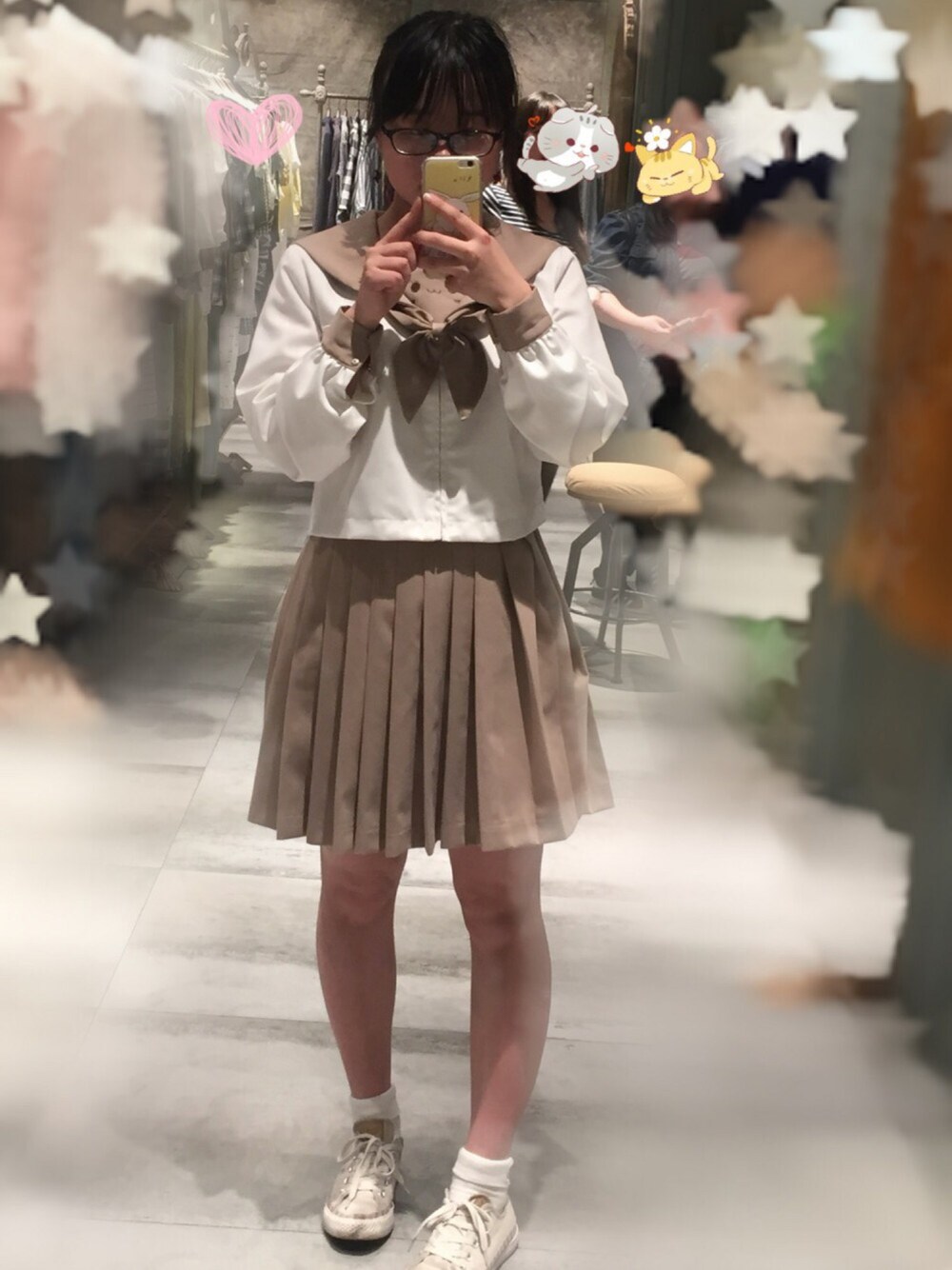 ホワイト系のスニーカーを着用したレディースの春コーディネートの1枚目の写真