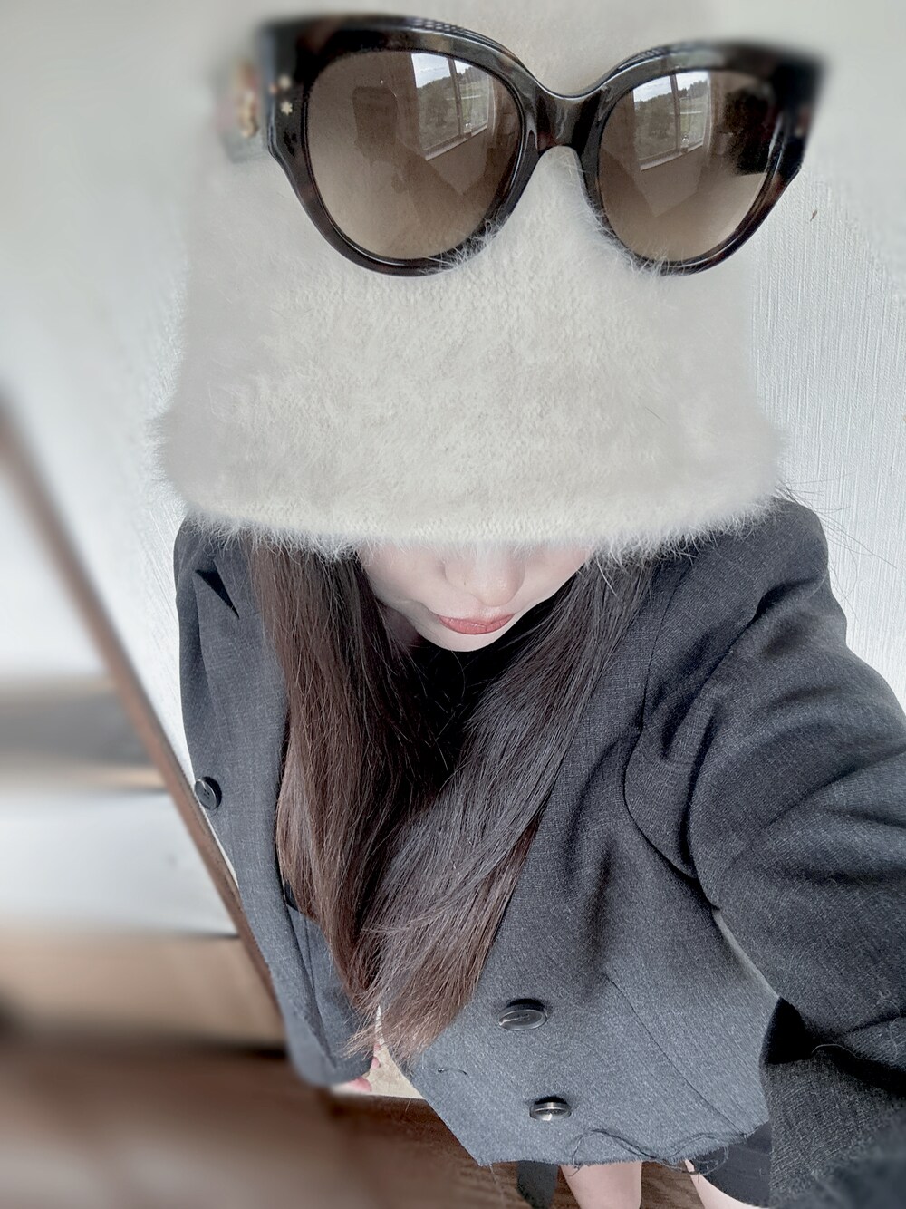 ショート丈ジャケットにシンプルなインナー×ショートパンツで足長コーデ🌟 冬先取りでけぱけぱのバケハで11月下旬でも使えるコーデ! ミドルブーツ合わせが可愛いです( ◜◡◝ )