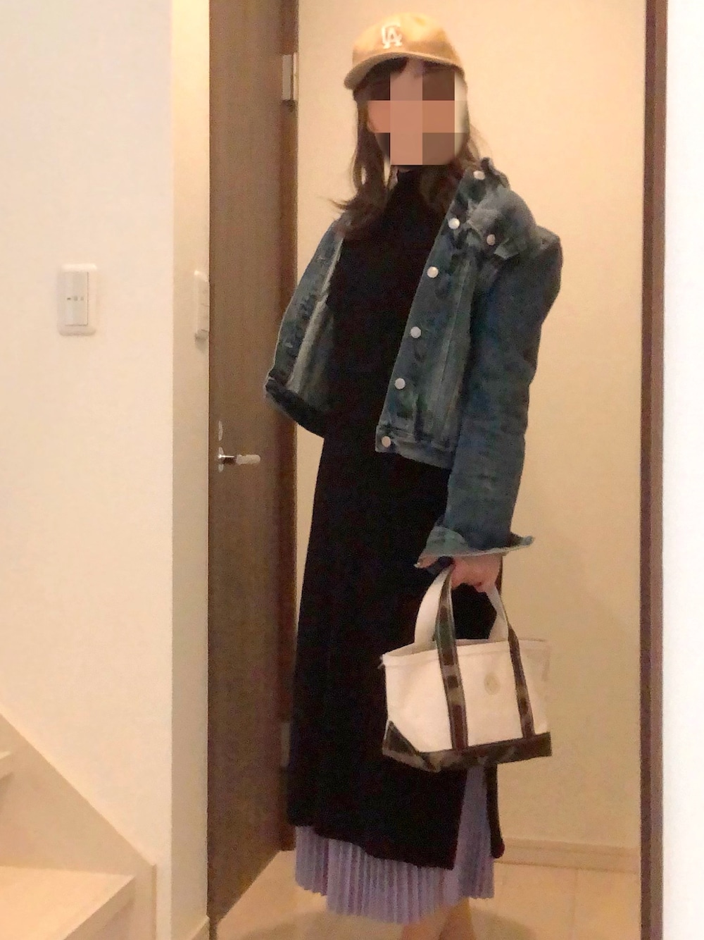 暖かかったですね🌸 ポカポカ陽気に誘われて、マスク探しのワンマイルコーデ👖 黒のニットワンピでも暑かった💦 本当はオーバーサイズのGジャンが欲しいです。