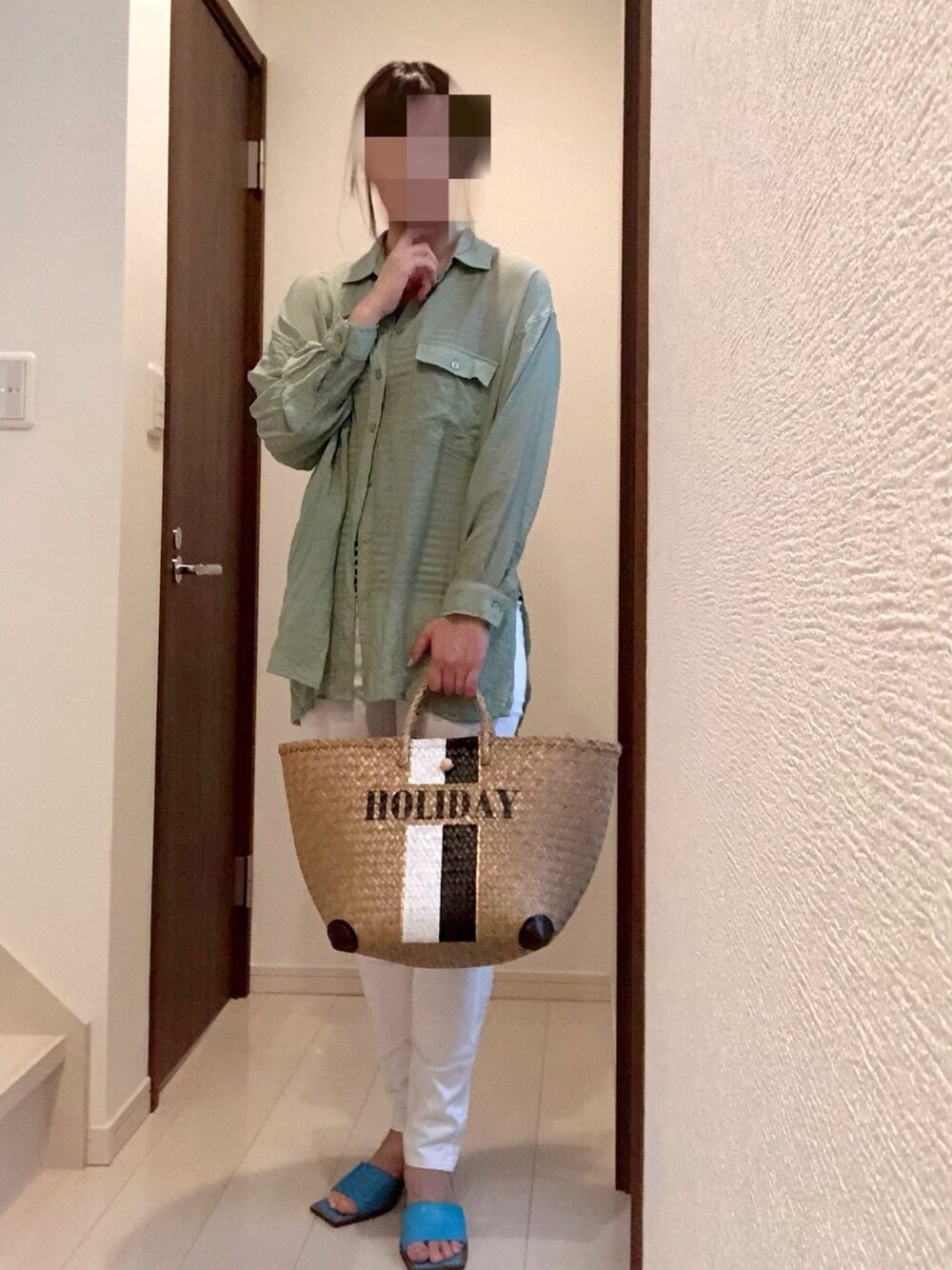暑かった今日☀️梅雨の晴れ間ですが、紫外線も強いのでリネンシャツを羽織ります💚🤍 ご覧頂きありがとうございます😊 いいね👍お気に入りに登録❤️、フォロー嬉しいです!