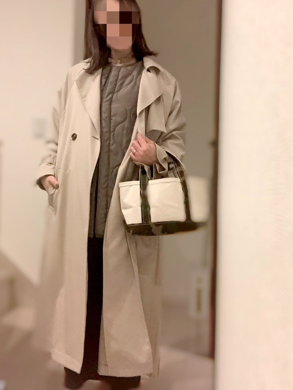 お迎えだけだけど、 トレンチコート🧥✖️キルティングライナーの重ね着💚 この重ね着またしたい💚🧡 ご覧いただきありがとうございます。 いいね👍、お気に入り❤️フォロー嬉しいです😊