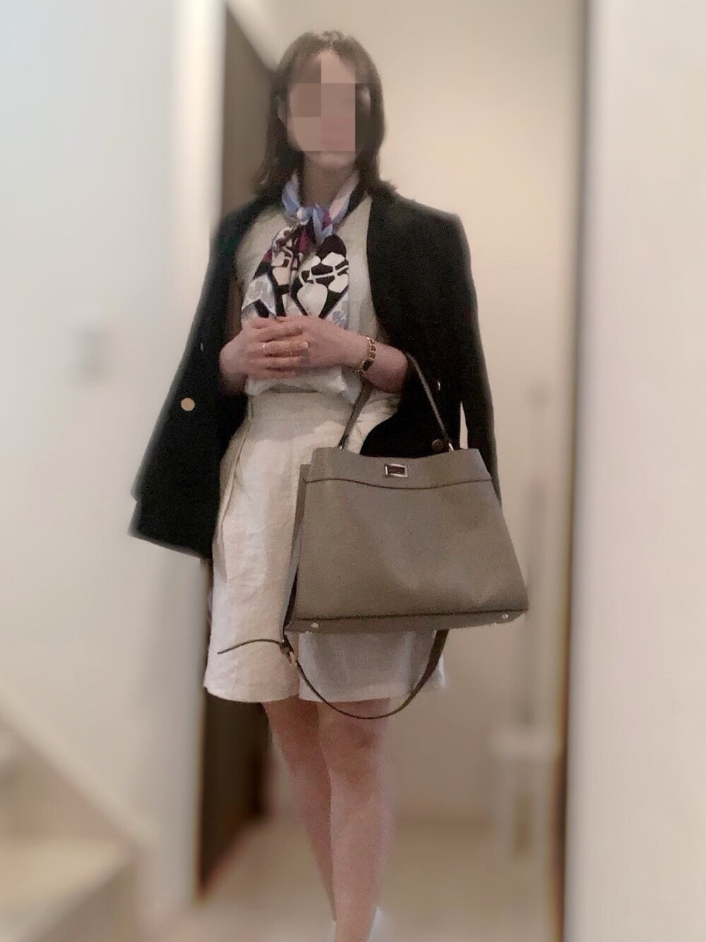 雑誌に載ってたコーデ✨ たまには脚を出さないと🦵 ホワイト✖️ネイビーの王道コーデにスカーフでアクセント💙 スカーフは最近マニプリ好きですが、 やはりブランドものは長く使えますね✌️ ご覧いただきありがとうございます😊 いいね、お気に入り❤️、フォロー嬉しいです!!