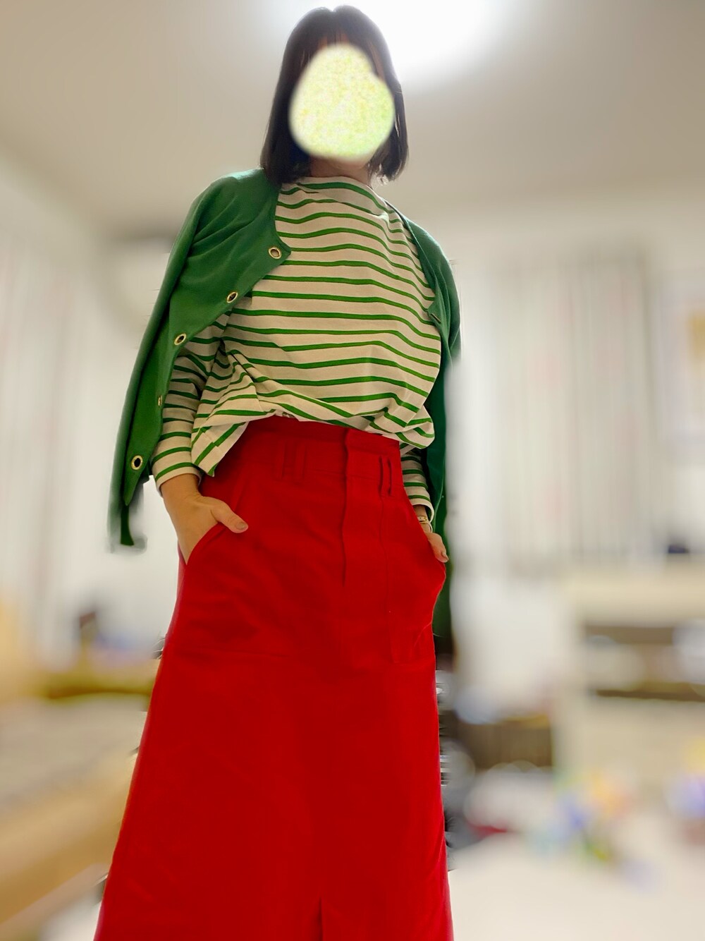 春が近くなるとボーダーが着たくなる💚❤️ 今年はグリーン差し色が多いな🍀