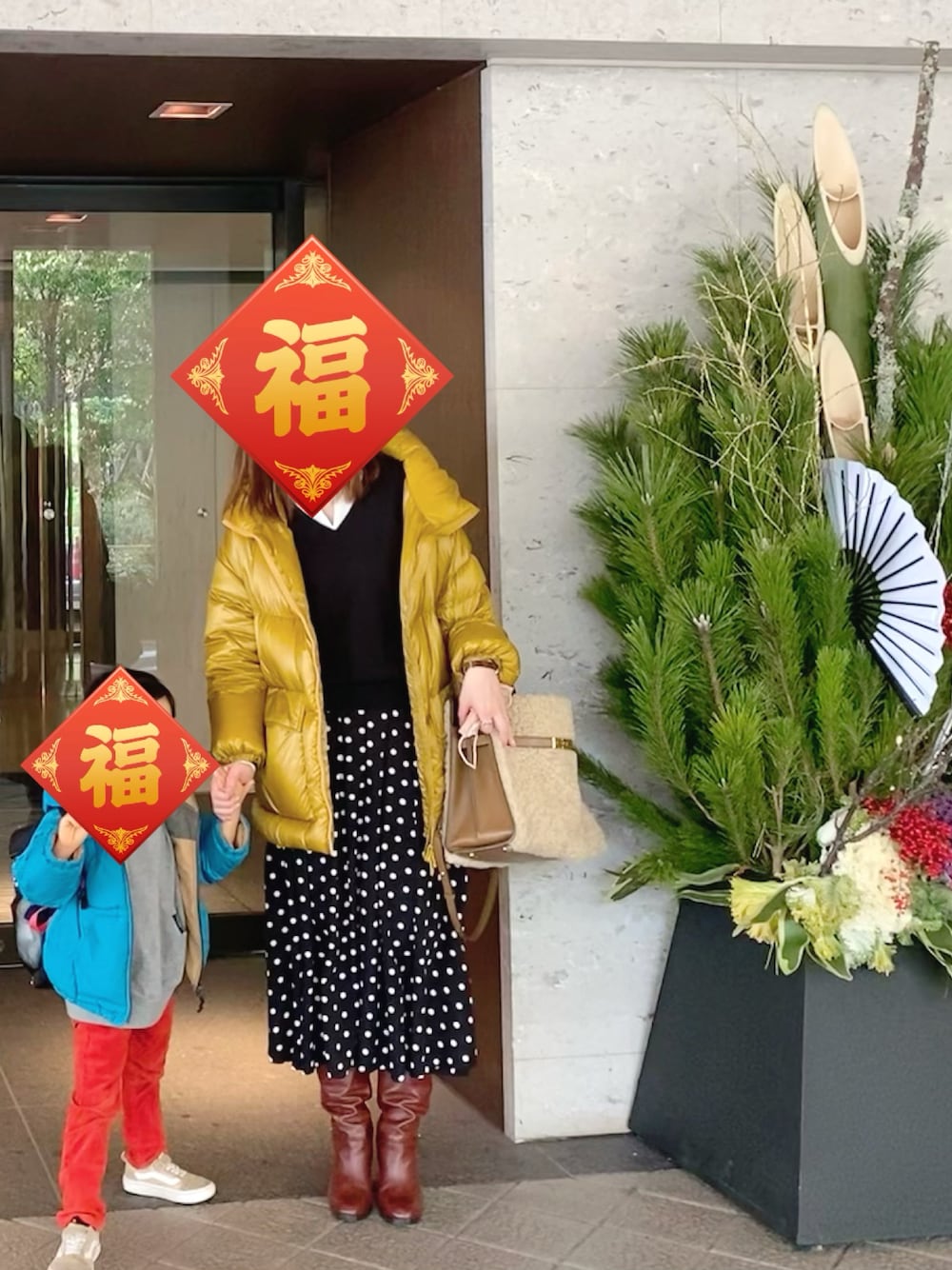 帰省コーデ 新年あけましておめでとうございます🎍 てか、息子写真撮る時いつも同じ😩💙❤️ 🤣🤣